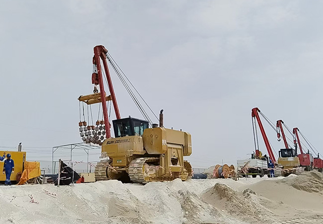 阿聯(lián)酋地區(qū)氣候炎熱,夏季氣溫常高達(dá)50攝氏度以上,加之沙塵環(huán)境復(fù)雜,對工程設(shè)備的性能提出了高要求。中蘇海工履帶吊管機(jī)以其強(qiáng)大的動(dòng)力系統(tǒng)、高效的散熱設(shè)計(jì)以及堅(jiān)固的結(jié)構(gòu),完美適應(yīng)了這些挑戰(zhàn),確保了施工的高效性和連續(xù)性。設(shè)備在高溫環(huán)境下運(yùn)行穩(wěn)定,操作靈活,極大地提升了施工效率,贏得了現(xiàn)場施工人員的一致好評。